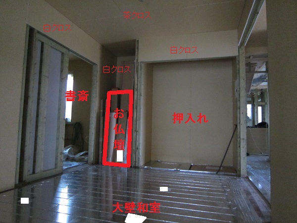 上棟完了後~大工工事 2015/05/07 i-smartの仏壇の見た目ってどうするとベストだったの?工事は着々と銀世界 ★★一条工務店i-smartの上棟20日目★★ さんぺいです。ランキングに参加しています。ポチッとしていただけるとありがたいです。↓ ↓ ↓にほんブログ村i-smartの仏壇の見た目ってどうするとベストだったの?工事は着々と銀世界 ★★一条工務店i-smartの上棟20日目★★水(祝)曜日は現場稼動39日目。着手日から59日目。上棟20日目 大工工事(天井と床暖房パネル)です。今日は子世帯と親世帯のうち、子世帯のほとんどの壁、天井、床暖パネルの設置が完了しました。 4畳半の和室 玄関まわり玄関及びシュークローク付近 子ども部屋 キッチン周り キッチン周り(逆から) 換気ダクトだけむきだしになっていました。棟梁がボックスを造作するそうです。 棚をつくって材料が置かれていました。場所はこの場所はテレビボード位置 この位置はダイニングテーブル位置 タレ壁部分はすべて石膏ボードのビスは2点留めになっていました。仮止め感があります。建具を入れるときに外すためでしょうか。わかりません。 和室のこの景色を見たときに。あれっ・・・・。さんぺい邸は仏壇があるのですが 仏壇の背が低いので、i-smartの茶白の標準クロスに囲まれた空間に仏壇をおくと不恰好になりそうかもと思いはじめました。仏壇の後ろをアクセントクロスにするとか、仏壇のスペースを廻り縁で囲むとかすればよかったかも。それか上に和風な棚を造作するか。修正追記:あとで棟梁に確認したら、タレ壁がつくようでした。クロスもちょっと薄く茶が入ったものでした。足元は今までは1段上がっていましたが、これはツラツラのフローリングのようです。床の間や書斎の出入り口を避けるなど、和室はもう少し時間をかけて考えた方がよかったかもしれません。ん・・・・ぅ。あとでDIYする自信がない。ご先祖様、これでいいですかぁ。みなさんの参考になるブログはこちらから↓ ↓ ↓にほんブログ村 [4回] スポンサードリンク