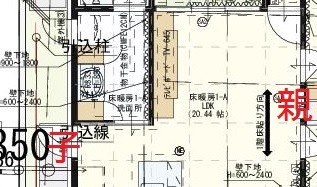 「親」がリモコンニッチの親機位置、「子」がウッドデッキの子機位置です。