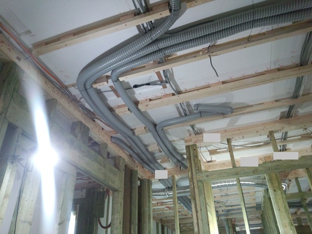 上棟 2015/04/26 雨漏り(泣)屋根の防水前のビニールシート養生には限界が。★★一条工務店i-smartの上棟5日目★★ さんぺいです。火災保険の比較のために「ほけんの窓口」に行ってみました。一条工務店の提携の東京海上日動火災保険の概算見積もりを持っていきました。結果は・・・。自分の望むプランでは断然一条提携の方が安かったです。提携割引が大きいようです。でも「ほけんの窓口」の方は、イヤな顔をひとつせず、同じ保障なら一条提携で入った方が得ですよ。と言ってくれました。無理に自分の窓口で加入を勧めるプランをつくることなく、誠意を持って対応いただき感謝です。ちがう保険の時に、「ほけんの窓口」をまた使おうと思いました。みなさんの参考になるブログはこちらから↓ ↓ ↓にほんブログ村雨漏り(泣)屋根の防水前のビニールシート養生には限界が。★★一条工務店i-smartの上棟5日目★★火曜日は現場稼動27日目。着手日から44日目。上棟5日目ですさて月曜日の大雨のために延期となっていた上棟3日目分のゴム化アスファルトルーフィングの施工を、火曜日に行いました。本来ですとフィリピン上棟チームがする予定でしたが、棟梁チームを召集されていました。 昨日までとは打って変わっていい天気になりました。昨日は大雨でしたので、防水処理をしていない屋根にはビニールシートがかけてありました。しかし・・・・天井裏、小屋裏収納には雨漏りが。小屋裏棟梁が気が付いて、中にもビニールシートで対策を施してくれていました。でも床板が濡れて、最終的には黒くなってしまいました。写真はしばらく経過したものです。 天井裏仕方ありません。とりあえず天井板が乾くのを願います。 ルーフィングの準備開始です。屋根には、フィリピンチームがエアーで吹いた後も釘などがまだまだ落ちていたようですので、粘着シートのルーフィングが貼られたときに破れないかが心配です。たぶんもう一度掃除しているでしょう。 中では水道屋さんが配管工事をしていました。 一度また潜ってみたい・・・。閉所恐怖症の方には無理でしょうね。そして1時間半後・・・。 はやっ。もう貼り終わっていました。 これなら上棟2日目にも貼れたんじゃないのかと思いましたが、夕方でしたからね。 上の写真も撮っていただきました。変わった感じの素材です。 これで雨は安心です♪ あとは電気屋さん(設備屋さん)も工事をしていかれました。ロスガードの配管です。 お猫様は最近ストレスが溜まっている感があります。 避難小屋が暑くなってくる季節になってきました。みなさんの参考になるブログはこちらから↓ ↓ ↓にほんブログ村 [5回] スポンサードリンク
