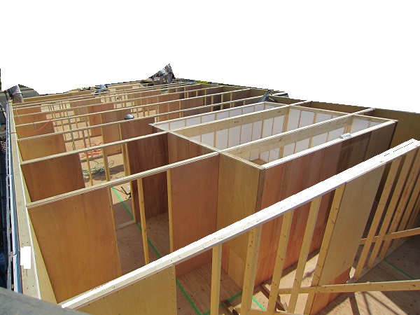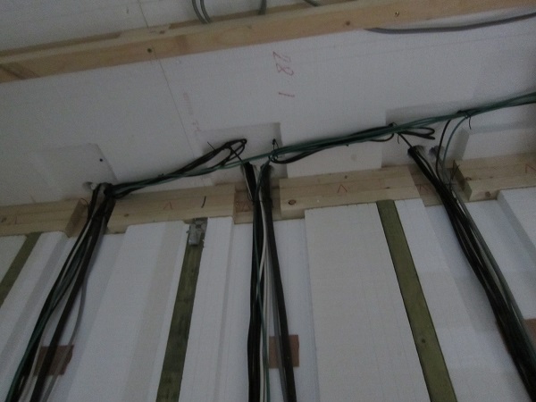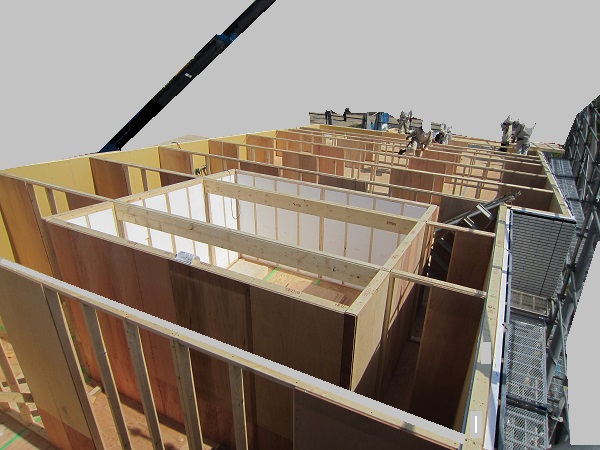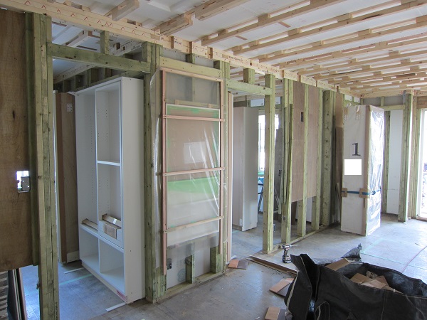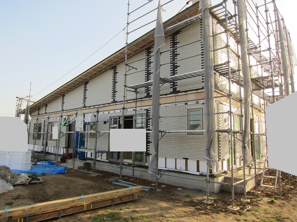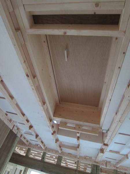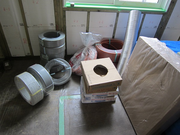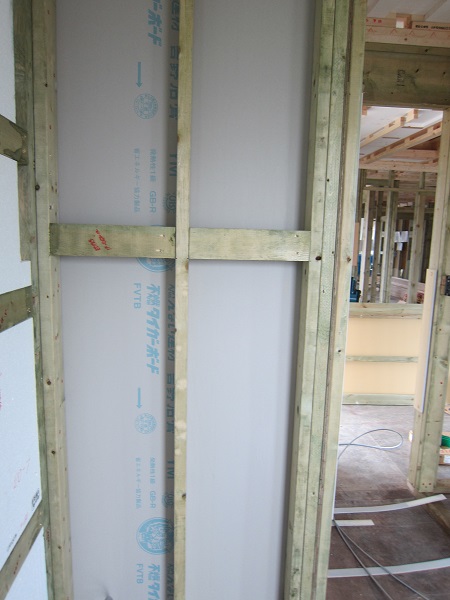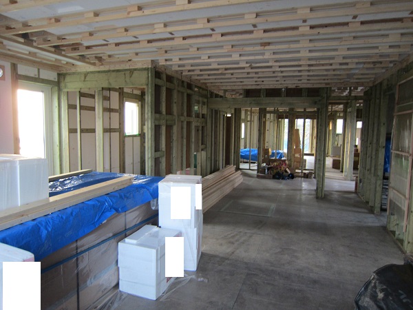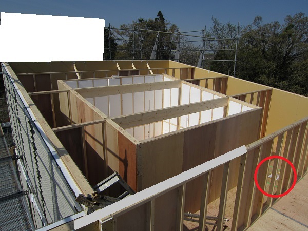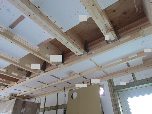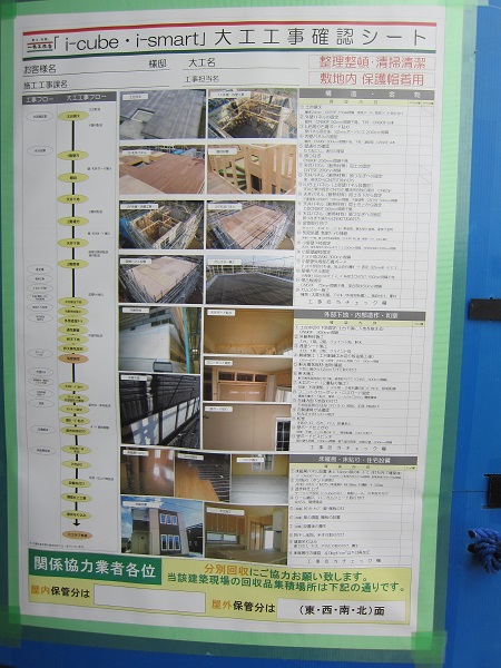 上棟完了後~大工工事 2015/04/25 上棟中の時点で、早くもやっちまったポイント発見(泣)★★一条工務店i-smartの上棟3日目★★ さんぺいです。一条工務店から基礎工事完了報告書なるものが、やってきました。すべての工程の施工中の状態が写真監理されていました。「さすが一条。ちゃんとやっているな」というような資料です。配筋検査時に基礎監督が撮った写真が数枚ありましたが、ほどんどの工事タイミングでの写真は基礎業者さんがきちっと撮ってくれていました。生コン打設時に何十台も生コン車が行き来するときにも、基礎監督はいませんでしたが、どうやら基礎監督が来る回数はそんな感じのようです。打設時に実際トラブルもありましたが、営業さんが後日解決してくれました。みなさんの参考になるブログはこちらから↓ ↓ ↓にほんブログ村上棟中の時点で、早くもやっちまったポイント発見(泣)★★一条工務店i-smartの上棟3日目★★さて日曜日は現場稼動25日目。着手日から42日目。上棟3日目です。日曜日で上棟チームはお休みです。月曜日にルーフィング施工予定ですので上棟途中です。今日は日曜日で誰も来ないかと思っていたら電気屋さんがきましたので、中へ。 玄関には工程の確認シートが、玄関建具屋さんの手で貼られていました。 フィリピンから運ばれてきた時点で、断熱材も電気配線にも配慮した凹みがつけられています。これでは着手承諾後の変更は簡単にできませんね。 換気扇設置場所のの天井下地がつけられていました。 配線前のLDKの天井です。 キッチン。天井の断熱材が一部、一旦外されていました。 換気ダクト位置でもないのになぜかなぁ。金物も使って梁をとめているんですね。 右の壁に分電盤、正面はお風呂、正面左は太陽光分電盤の予定です。 お風呂です。1坪ですが、今より広いので楽しみです。 リモコンニッチ 左がテレビボード予定位置、右のタレ壁の中が和室です。 書斎。 玄関のシューズウォール予定位置です。コーヒーが保温されていました。そしてはやくもやっちまったポイントが・・・ 家内が気がついたのですが、これです。換気ダクトをもっと壁寄せにすればよかった・・・・(泣) 2世帯ですので、キッチンが2箇所あります。平屋の間取りの制約から、貴重な窓側にセカンドキッチンがつけられなかったので、部屋の中央部に。その代償として、主寝室を通って換気ダクトが天井下がりで通過します。 図面は赤の通りですが・・・ 青のようにすれば、天井下がり部分が少なくすんで、狭い主寝室の圧迫感が軽減できたのに・・・。しょうがないです・・・・。 1コマ2150mmの天井下がり・・・。どんだけ圧迫感があるんだろう。気を取り直して・・・ 太陽光のパワコンの裏です。4つ付きますが、その内3つの配線部分です。断熱材がカットされています。 掃き出しの窓。何か書いてある・・・ へ~。気密性考えてますね。 洗濯機取り付け位置。 国産の石膏ボードが使用されていました。HRDの既製取り付けが、吉野石膏製。材料としておいてあるものが、チヨダウーテ製でした。 電材が運び込まれていました。 変わった金物で柱が止められていました。なんだろう。 おトイレ。玄関横ですので、換気扇は上にしました。 床板用の釘です。すごい量。そして一旦退却。夕方18時前に行くと、まだ作業をされていました。 だいぶ進んでいます。 分電盤予定位置。 天井への配線は、EPSに針金をさして、VFケーブルを固定するという感じです。手際がとても良かったです。 床下もなにやら工事中。 情報ボックスの裏です。 パワコンの配線です。 気密をとっている床板にも、もともとの穴が。気密測定前に埋められているか要チェックですね。まだ上棟途中で屋根材を貼っていないのに、だいぶ進んだ感じです。みなさんの参考になるブログはこちらから↓ ↓ ↓にほんブログ村 [3回] スポンサードリンク