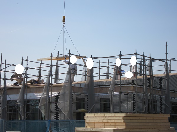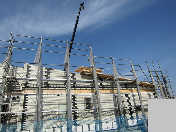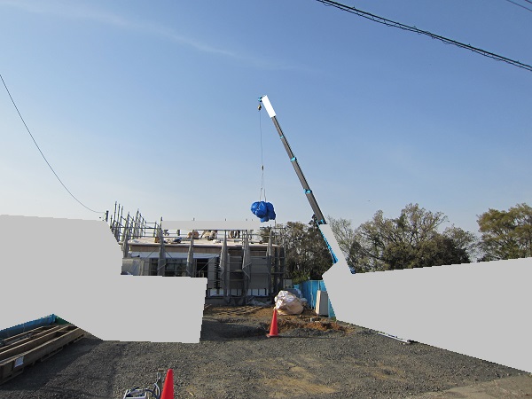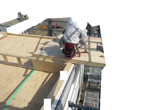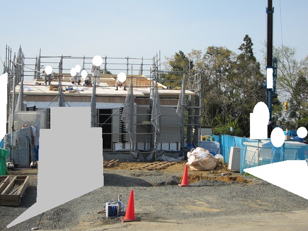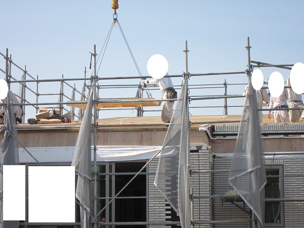 上棟 2015/04/23 上棟その4 i-smart天井裏は荷物スペースになるんじゃないの?。小屋裏収納は隠し部屋みたい。 ★★一条工務店i-smartの上棟2日目PM★★ さんぺいです。最近いい天気が続きます。あの上棟前後の雨ばかりの時期はなんだったのでしょうか。4月上棟が決まったときには、梅雨じゃないから良かったと思っていましたが、なたね梅雨と呼ばれる季節の変わり目の雨にも注意ですね。上棟の日を決めるときはやっぱり晴れのシーズンがいいですよね。みなさんの参考になるブログはこちらから↓ ↓ ↓にほんブログ村上棟その4 i-smart天井裏は忍者屋敷。小屋裏は隠し部屋みたい。 ★★一条工務店i-smartの上棟2日目PM★★さて土曜日は現場稼動24日目。着手日から41日目。上棟2日目の午後です。2日目の午後の休憩の後に、工事再開。 屋根を伏せる前の天井裏の作業です。見物に来た近所の方の一言・・・近所の方「あの北側の高いところは部屋かい?」さんぺい「収納スペースです。うなぎの寝床みたいな家で、片流れなんでどうしてもああゆう高さがでるんですよ」そうですよね。普通にみたら隠し部屋でもあるみたいですよね。その隠し部屋の製作作業の様子がこちら・・・ 小屋裏収納の周りもぐるぐり行き来できるだけの十分すぎる高さ。忍者屋敷みたいです。それぞれを間仕切りにしていないので、小屋裏以外の天井裏も収納スペースとして使えそうです。まあ、出し入れがかなり面倒くさそうですが。 EPS断熱材に囲まれた小屋裏収納と、天井裏の忍者部屋スペースは繋がっていないので、赤丸の天井裏点検口から入るしかありません。天井裏は高さ1400mmの制限となる天井裏の天井が張っていないので、部屋としては使えませんが、石膏ボードの吊り天井のようなものではなく、きちんと構造用合板で1F部分の天井ですので、少々の重い荷物でもおけるスペースとしては使えそうです。ただ、電気も引き込めない、照明も付けられない、断熱も利いていないスペースですので、どうでもいい物しか保管できないと思いますが。 そして屋根を伏せる作業がはじまりました。あの風景はもう見ることはできません。 やっぱり南側の軒が短い・・・計算どおり心配です。西側は長さがあるのに・・・軒の長さに後悔★i-smartはどれだけ日差しが入るかCADで計算してみた。http://sanpei.ko-me.com/madori/nokinonagasa パノラマウィンドウは雨の日にはあけることができませんね。そうこうするうち、15時の休憩です。今日は結構と手間がかかる作業のようです。だいぶ時間がかかっています。休憩中に中をみせてもらいました。昼間のLDKの明るさを確認したかったからです。 結構明るい♪ リモコンニッチ 屋根を伏せる作業は続きます。 周囲をみていたら前回の記事で書いたとおり、外壁パネルは周囲だけでなく、外側の壁からもビス止めしてあるので、面で接続もされており、気密性が高いようです。 屋根が伏せ終わったら、上棟3日目に貼るルーフィングを屋根にのせておきます。レッカーは2日目までで、3日目のルーフィング作業のときにはレッカーはいませんので。 ビニールシートものせます。これで、レッカーさんも運送屋さんも帰りました。 監督にお願いしてビニールシートを張る前に屋根の写真を撮ってもらいました。 1.5寸ですと、材料は滑ってきませんね。気になるのは、エアーでゴミを吹いてくれていましたが、まだたくさんいろいろ落ちています。ルーフィングは接着剤付のシートのようですので、釘や金具が落ちている状態では張っては欲しくないですが。 そして月曜日の大雨に備えて、ビニールシートを張っています。 これで2日目の作業は終了です。そして再度少し中を見せてもらいました。 小屋裏の入り口です。ハシゴはまだついていませんでした。上棟2日目でルーフィングを残して、上棟作業が終了です。一気に進んだかたちです。日曜日をあけて、月曜日にフィリピン上棟チームがルーフィング作業をする予定でしたが、大雨予想ですので、火曜日になりそうです。みなさんの参考になるブログはこちらから↓ ↓ ↓にほんブログ村 [1回] スポンサードリンク