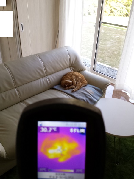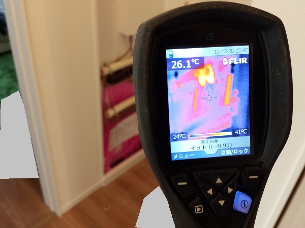 サーモグラフィーで床暖房の効き具合と、i-smartの外部への放熱状態を見てみた。