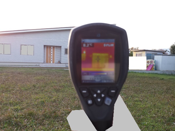 南側の窓ですので、日当たりがいいので、外壁面と窓が暖かく、太陽光パネルは冷たい感じでした。