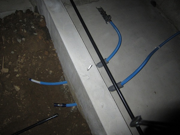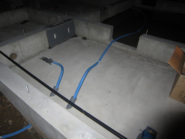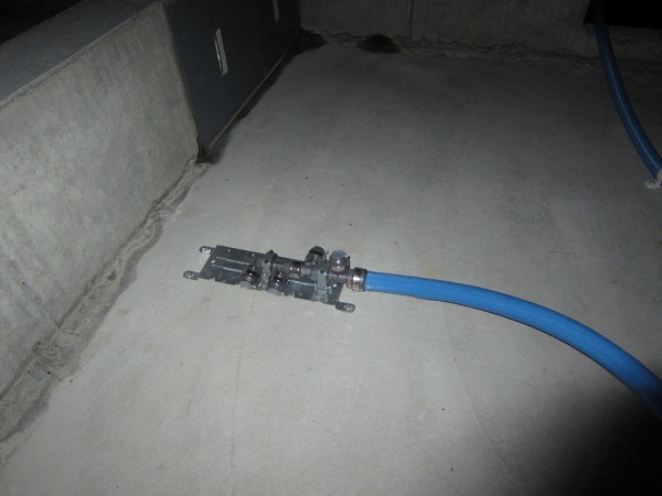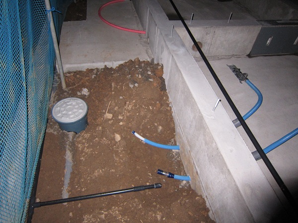 トラップ枡が新設されていました。青ホースは上水ですね。