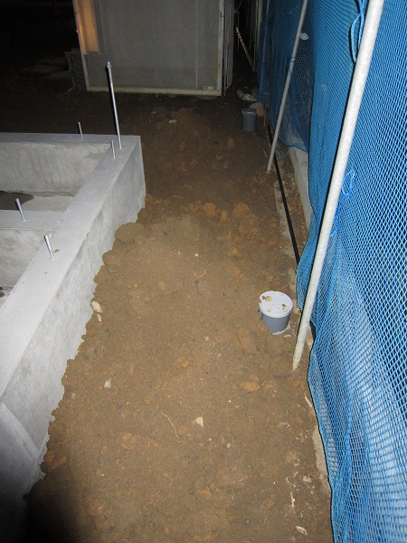 朝7:20.この写真をとっていたら、現場に基礎屋さん到着。