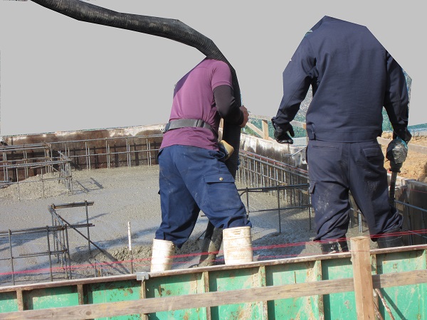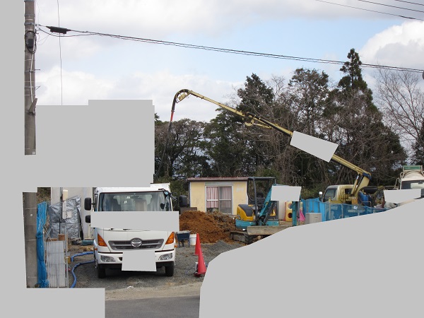 4tと5tのミキサー車が何度も何度も出入りしました。