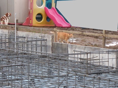 各部屋部分の基礎の立ち上がりもできました。部屋の大体の大きさがわかるようになりました。