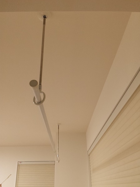 我が家は田舎ですので、屋外に物干しセットが4基あって、洗濯物を干す場所には困りませんが、室内にも室内用のSPC金物とホシ姫サマを各2基づつ付けました。