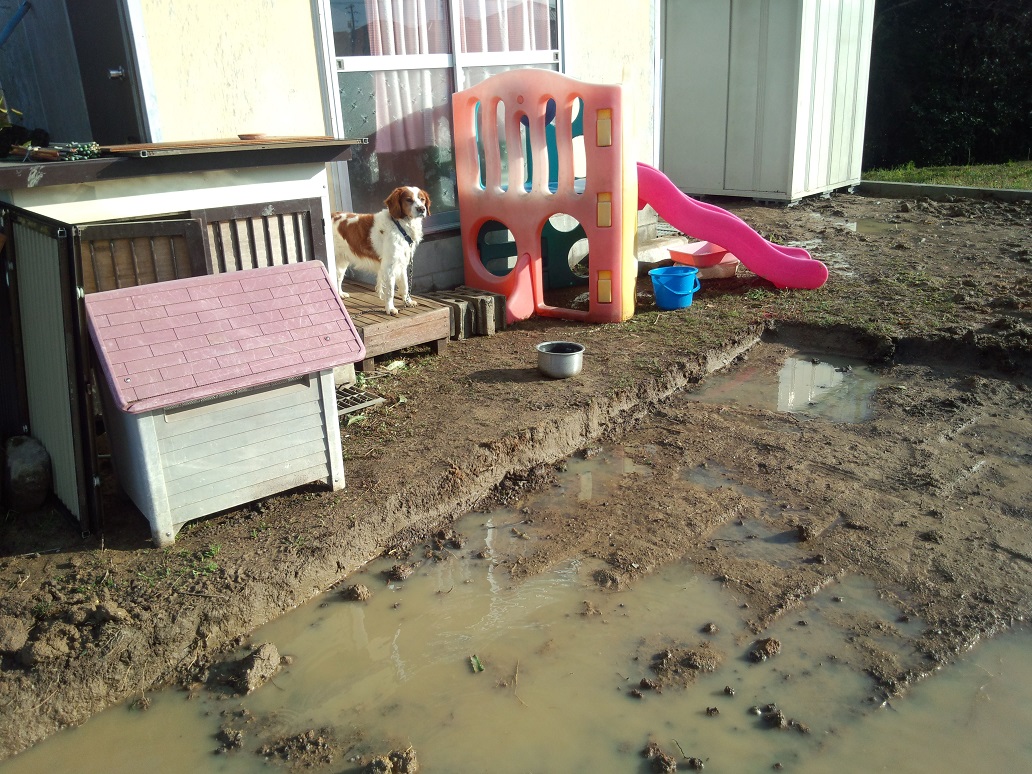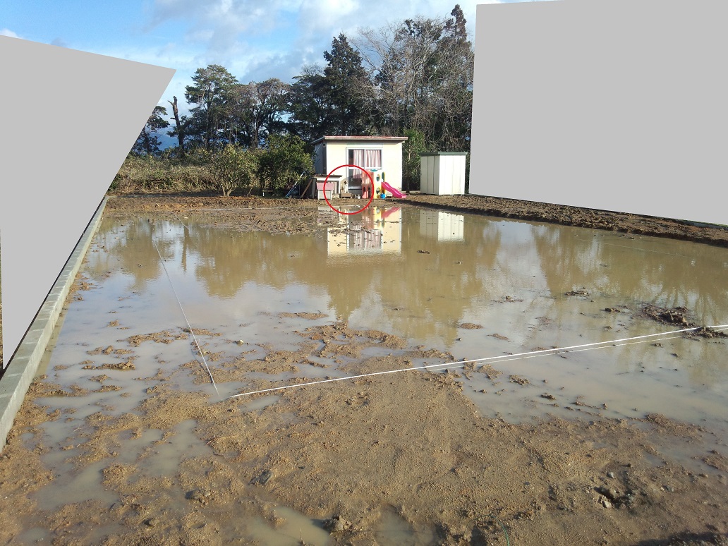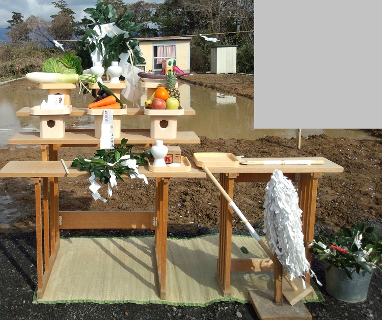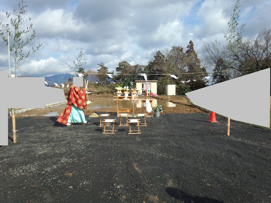 地鎮祭~基礎着工 2015/03/05 一条工務店の提携神社で本日地鎮祭しました。一条の工法だから?現場は悲惨な状況。 さんぺいです。今日地鎮祭があって、基礎着工前というのに、まだ家内が庭とソーラーカーポートの位置について、今更の変更をしようと画策・・・・。まぁ、あとで後悔はしたくないので、じっくり考えたいところですが、時間はありません。一条工務店の参考になる他の記事はこの下をポチッと ↓ ↓ ↓にほんブログ村今日、めでたく地鎮祭を迎えました。着手承諾後の緊急入院や、建築確認が下りていない状態での、住んでいる家の解体への不安など・・・いろいろありましたが、今日の日を迎えることができました。ここまでこれたのも、わざわざ来ていただいた一条の営業さんと設計さんのおかげで、ホント感謝の気持ちでいっぱいです。ですが・・・晴れたとはいえ この状況です。足元は田んぼ状態。 犬もぎりぎりまで、基礎の漉き取り攻撃にあい、逃げ場がありません。 まぁ、なんとかなるでしょう・・・さて、地鎮祭ですが、通常は地元の氏神さんに頼むのが通例ですが、一条工務店提携の神社さんにお願いすることにしました。なぜかといえば、最初は地元の氏神の神主さんに聞いてみたら、●地元の氏神さん 4隅の笹と縄は施主が用意が必要。 祭壇は神主さんが用意する。 供物は施主が用意する。ということでした。私も仕事で施主側でたびたび地鎮祭をしたことがあり、供物(海の幸、山の幸、野の幸、塩、洗米など)や奉献酒を用意した経験はあったのですが、4隅の笹と縄を用意する時間がなかったので、一条工務店さんの紹介の神社さんにお願いしました。一条さん紹介というより、一条さん提携というほうが正しい感じです。神主さんにお聞きしたら、一条さんの地鎮祭をいつもしていて、一条のことをよく知っている感じでした。神主さんと、現場に早めに来ていたさんぺいだけで顔合わせ。時の挨拶をした後、さんぺい「見ての通り、地縄部分は池ですが大丈夫ですか?」神主さん「一条さんの地鎮祭はいつもこうなります。一条工務店は先に(外構業者さんが)基礎の部分を掘ってから、地鎮祭をして、基礎ですので、雨が降るといつも池になります。周囲の駐車場部分でも大丈夫ですよ。」ということでまず、神主さんが自ら4隅の笹と縄の設置を行います。 そして祭壇を設置 施主が前列3人、後ろが右が営業さんで、左が設計さんでした。施主が用意したものは何もありません(普通はするのでしょうが)。そうこうしていると、一条の営業さんと設計さんに来ていただき、神主さんの説明がはじまりました。鎌入れの方法、玉串奉奠の方法の説明がありました。そして神事が進行。最初に、八百万の神が降臨してくる儀式。神主さんが「おぉぉぉぉ~」と言います。そして、祝詞奏上。よく神社で神主さんが唱えているアレです。そして地鎮の儀四隅に神主さんが酒や半紙を蒔きます。ドレス温湿度計(簡易熱中症指標表示付き) THD501そして鎌入れ。施主のさんぺいが、エイエイエイの3回の掛け声で、鎌入れ。そして砂盛りの上に刺さった笹(私は笹でしたが、草みたいなのの場合も)を抜き、下におきました。そして鍬いれ営業さんが、エイエイエイの3回の掛け声で、鍬入れ。そして砂盛りを壊します。地域差がこの部分はかなりあります。私は設計さんが、鎌で、施主が鍬、施工業者が鋤と思っていましたが、違いました。神主さんにまかせましょう。そして玉串奉奠出席者全員がしました。そして神主さんが「おぉぉぉぉ~」と言い、神様が帰っていかれました。その後は神酒を飲む直会とかもなく、施主の挨拶などもなく、神主さんの簡単な挨拶で終わりでした。そして、「初穂料」か「玉串料」のどちらに書くか迷いましたが、「玉串料」と書いた祝儀袋に3万円入れて、神主さんに渡しました。あと神主さん、営業さん、設計さんに、お土産に紅白まんじゅうを、私たちで用意しておいたので、持って帰ってもらいました。紅白の2個いりで500円程度でした。ちなみに紅がコシ餡、白が粒餡でした。(どうでもいい情報) 地元の工務店とかですと、ここで心付けということなのかもしれませんが、一条さんは現金を社員に扱わせない会社ですので、これでいいのかなと思います。(たぶん)地鎮祭後に近所への挨拶をする場合もあるようですが、建て替えですので、近所への挨拶周りもしませんでした。(解体工事前に既に済みであったため)そしてみんなで祭壇の前で記念撮影をしました。 あなたのマイホーム 絶対トクする入手ガイド2015 (エスカルゴムック 313) ムック後で聞いたのですが、神主さんが祝詞を読んでいるとき、赤い丸の部分に置物があるなと思っていたそうです。 いえいえ、生きてますが・・・(笑) 供え物は神主さんが持ち帰るのが通例と思っていましたが、神主さんから頂きました。 宗教的にこだわりの無い方は、一条提携神社おすすめです(笑)参考になる他の記事はこの下をポ