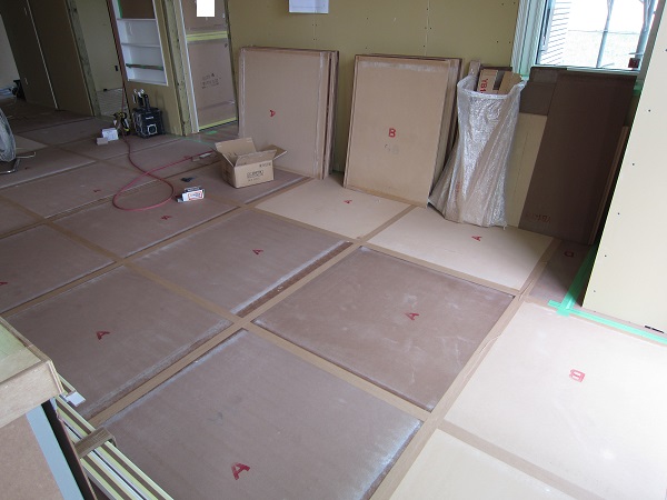 上棟完了後~大工工事 2015/05/16 フローリング、床養生パネル敷設。タイル屋さん施工開始。★★一条工務店i-smartの上棟29日目★★ さんぺいです。ランキングに参加しています。ポチッとしていただけるとありがたいです。↓ ↓ ↓にほんブログ村フローリング、床養生パネル敷設。タイル屋さん施工開始。★★一条工務店i-smartの上棟29日目★★金曜日は現場稼動46日目。着手日から68日目。上棟29日目 大工工事(フローリング材と床養生パネル敷設)、外壁タイル工事です。 まず、床暖房の圧力確認。OK。漏れなしですね。 和室の3連引き戸の枠が出来ていました。これは棟梁が作成します。 3連ですので枠がだいぶ広いのですね。 棟梁が子供部屋のフローリングを施工していました。グレーウォールナットの床。写真でとった感じと、実際みた感じはぜんぜん違います。これから採用される方は、絶対サンプル片だけでなく、実際に貼られた床を見ておくべきですね。 そして既にフローリングが終わった場所には、床養生パネルが貼られていました。このパネルだけでも図面がちゃんとつくってありました。あとタイル屋さんが外壁を施工していました。 あとで見に行ったら、一部ができあがっていました。が、ヒビなどの修正依頼箇所は未だでしたので、後で施工すると思われます。みなさんの参考になるブログはこちらから↓ ↓ ↓にほんブログ村 [5回] スポンサードリンク