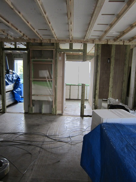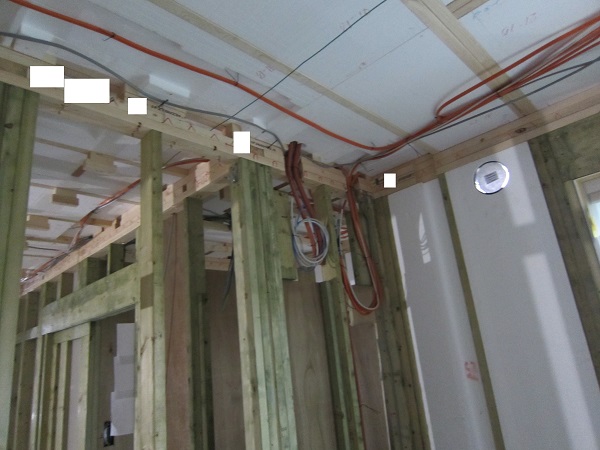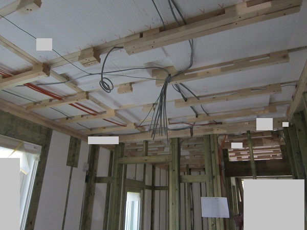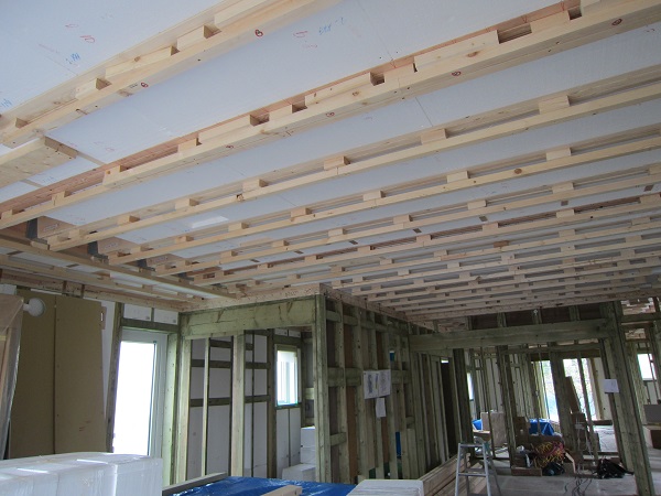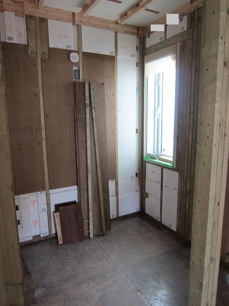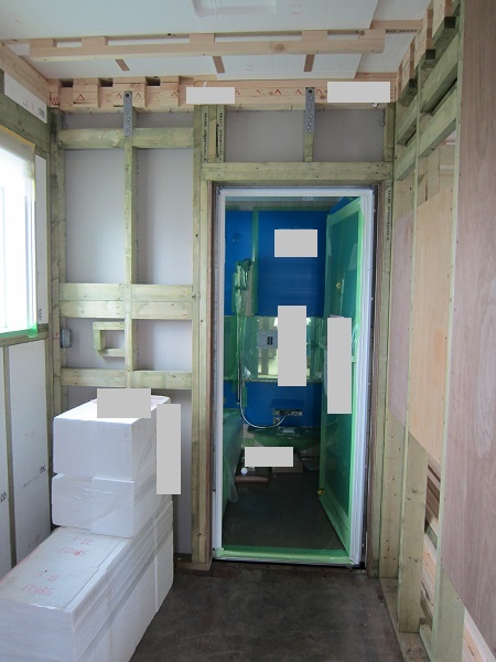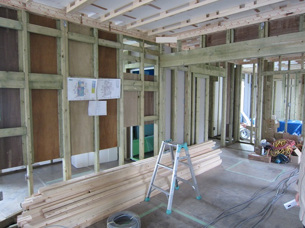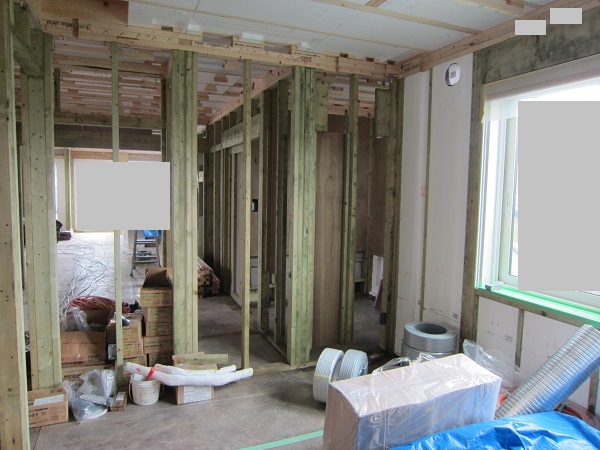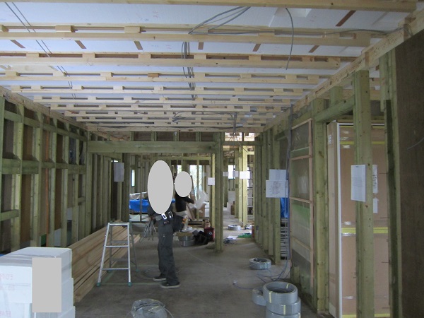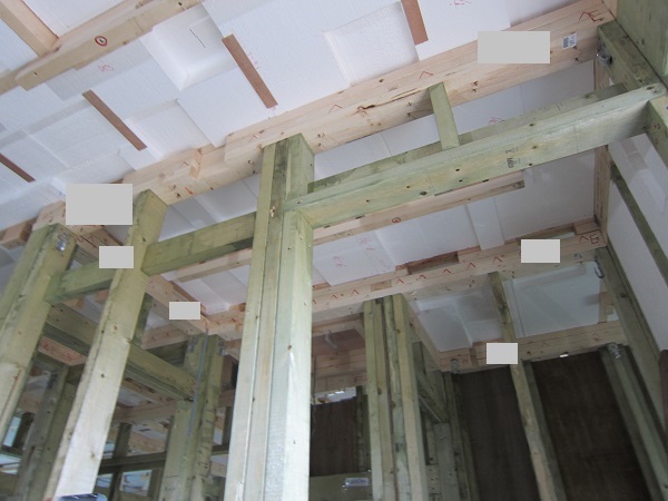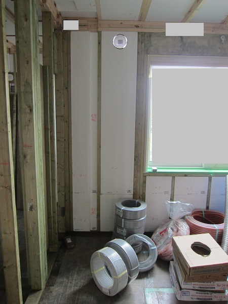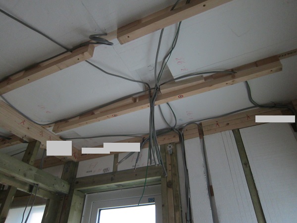 上棟完了後~大工工事 2015/04/25 上棟中の時点で、早くもやっちまったポイント発見(泣)★★一条工務店i-smartの上棟3日目★★ さんぺいです。一条工務店から基礎工事完了報告書なるものが、やってきました。すべての工程の施工中の状態が写真監理されていました。「さすが一条。ちゃんとやっているな」というような資料です。配筋検査時に基礎監督が撮った写真が数枚ありましたが、ほどんどの工事タイミングでの写真は基礎業者さんがきちっと撮ってくれていました。生コン打設時に何十台も生コン車が行き来するときにも、基礎監督はいませんでしたが、どうやら基礎監督が来る回数はそんな感じのようです。打設時に実際トラブルもありましたが、営業さんが後日解決してくれました。みなさんの参考になるブログはこちらから↓ ↓ ↓にほんブログ村上棟中の時点で、早くもやっちまったポイント発見(泣)★★一条工務店i-smartの上棟3日目★★さて日曜日は現場稼動25日目。着手日から42日目。上棟3日目です。日曜日で上棟チームはお休みです。月曜日にルーフィング施工予定ですので上棟途中です。今日は日曜日で誰も来ないかと思っていたら電気屋さんがきましたので、中へ。 玄関には工程の確認シートが、玄関建具屋さんの手で貼られていました。 フィリピンから運ばれてきた時点で、断熱材も電気配線にも配慮した凹みがつけられています。これでは着手承諾後の変更は簡単にできませんね。 換気扇設置場所のの天井下地がつけられていました。 配線前のLDKの天井です。 キッチン。天井の断熱材が一部、一旦外されていました。 換気ダクト位置でもないのになぜかなぁ。金物も使って梁をとめているんですね。 右の壁に分電盤、正面はお風呂、正面左は太陽光分電盤の予定です。 お風呂です。1坪ですが、今より広いので楽しみです。 リモコンニッチ 左がテレビボード予定位置、右のタレ壁の中が和室です。 書斎。 玄関のシューズウォール予定位置です。コーヒーが保温されていました。そしてはやくもやっちまったポイントが・・・ 家内が気がついたのですが、これです。換気ダクトをもっと壁寄せにすればよかった・・・・(泣) 2世帯ですので、キッチンが2箇所あります。平屋の間取りの制約から、貴重な窓側にセカンドキッチンがつけられなかったので、部屋の中央部に。その代償として、主寝室を通って換気ダクトが天井下がりで通過します。 図面は赤の通りですが・・・ 青のようにすれば、天井下がり部分が少なくすんで、狭い主寝室の圧迫感が軽減できたのに・・・。しょうがないです・・・・。 1コマ2150mmの天井下がり・・・。どんだけ圧迫感があるんだろう。気を取り直して・・・ 太陽光のパワコンの裏です。4つ付きますが、その内3つの配線部分です。断熱材がカットされています。 掃き出しの窓。何か書いてある・・・ へ~。気密性考えてますね。 洗濯機取り付け位置。 国産の石膏ボードが使用されていました。HRDの既製取り付けが、吉野石膏製。材料としておいてあるものが、チヨダウーテ製でした。 電材が運び込まれていました。 変わった金物で柱が止められていました。なんだろう。 おトイレ。玄関横ですので、換気扇は上にしました。 床板用の釘です。すごい量。そして一旦退却。夕方18時前に行くと、まだ作業をされていました。 だいぶ進んでいます。 分電盤予定位置。 天井への配線は、EPSに針金をさして、VFケーブルを固定するという感じです。手際がとても良かったです。 床下もなにやら工事中。 情報ボックスの裏です。 パワコンの配線です。 気密をとっている床板にも、もともとの穴が。気密測定前に埋められているか要チェックですね。まだ上棟途中で屋根材を貼っていないのに、だいぶ進んだ感じです。みなさんの参考になるブログはこちらから↓ ↓ ↓にほんブログ村 [3回] スポンサードリンク
