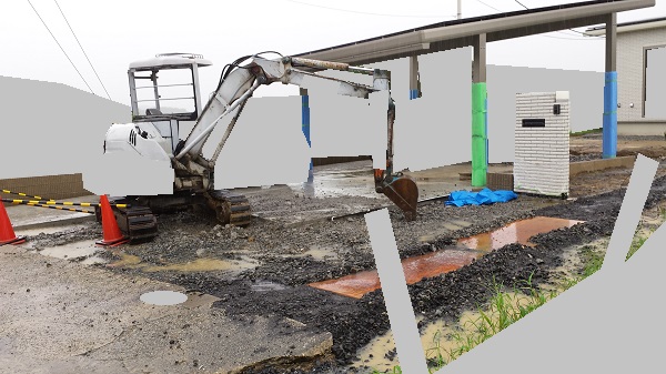 まだ乾ききっていない生コンを解体です。