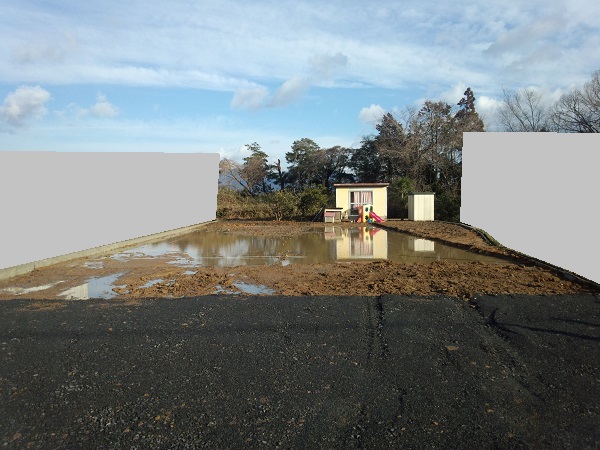 地下に水を抜く配管もありません。今日にでも雨が降ったら、逆流してソーラーが壊れるかも。養生も布テープだし。