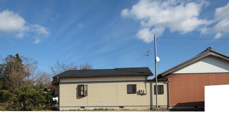 家じゃないですよ。電気関係の引き込みポールです。