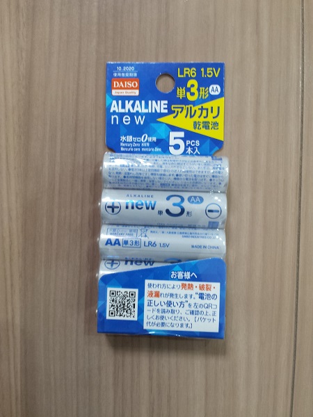 100均で買った単三電池を2本いれました。