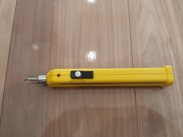 スイッチをオンにして、白いボタンを押すと、先が熱くなります。(ヤケドなどに注意)