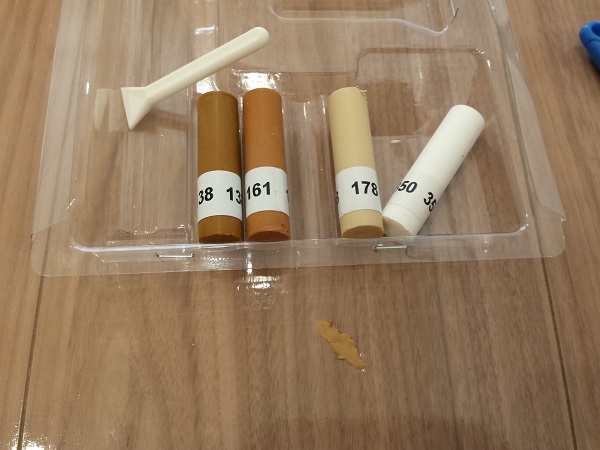 スティックの161番が近い色でした。ですがあくまで近いだけですので、混ぜ合わせてつかいます。