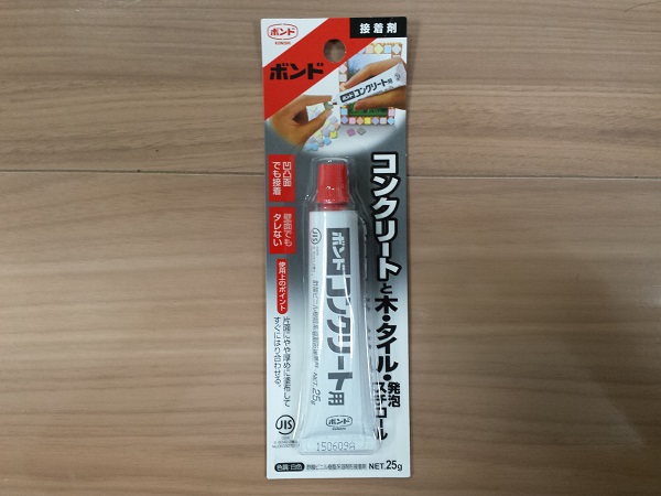 100均でこんなボンドを買ってきてました。ホームセンターにもいっていろいろみたけど、1000~2000円ぐらいするものでも、同じような素材のような気がしたので。(自己責任で)